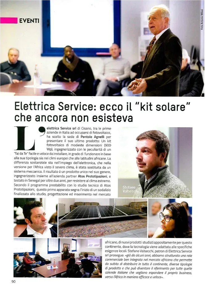 Il nostro spirito innovativo ci ha portati anche sulle pagine della stampa: in collaborazione con Pentole Agnelli abbiamo presentato un kit fotovoltaico “fai da te” pensato anche per i contesti africani, con caratteristiche uniche in termini di adattabilità, semplicità e autonomia. Un progetto sviluppato in sinergia con aziende partner, con l’obiettivo di portare energia dove prima non arrivava.